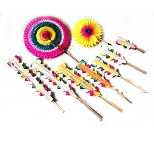 Hand made Paper fan,used for the decoration, and used on idol of god made up of mud, there fan is decorated on the back of the head. . . It is available in different sizes.