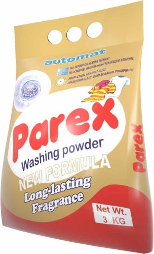 We are offering parex washing powder -3-0kg. High quality washing powder for all types of fabrics. For automatic and hand washing. High foam. High quality nylon pack. Net weight 3.0kg. Activity