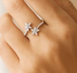 Parkling Diamond Twin Bloom Ring in White Gold