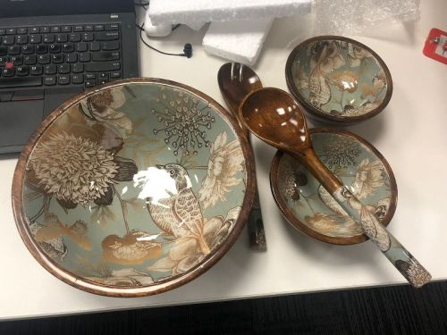 Round Polished Wooden Serving Bowl Set, For Gift Purpose, Hotel, Restaurant, Home, Pattern : Printed
