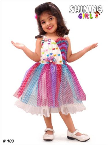 We offer pretty party wear frock created with soft synthetic fabric, added with small acessories. In this product the available colors is pink, girls favorite color.