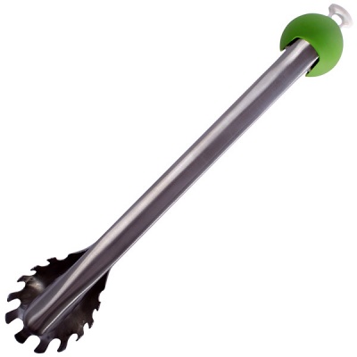 Pasta can be tough to work with; it's slippery and messy and never wants to do what it's told. Show pasta who's boss with the Ergosphere™ Pasta Tongs. One part pasta spoon, one part tong, this pair knows how to handle unruly noodles for easy prepping and serving. Product Features: • Innovative design blends a pasta spoon with tongs • Unique comfort ball fits in the palm of your hand • One-handed push-button mechanism • Tap end to lock for storage and unlock for use • Stainless steel arms • Top-rack dishwasher safe