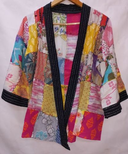 Printed Patchwork Cotton Kimono Jacket, Size : Free Size