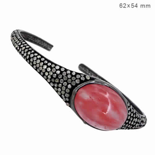 PAVE DIAMOND GEMSTONE CUFF BANGLE, Size : 62X54 Mm