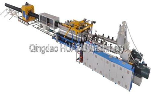 the corruated pipe production line is developed with the ninety times advanced technology of west europe by our company. The machine is equipped with double tube single-control stainless steel spraying shaper to form a production line. It avoids a waste condition when one tube is adjusted and the other one is affected. The auto single-control double haul off and cutter are combined with the front shaping technology to make operation more flexible. Let you enjoy economic benefit which is brought about by separately control double-tube extruding. It can make fully use of the extruding capacity of the extruder. Even if it produces small diameter pipe, it can get great output, too.
