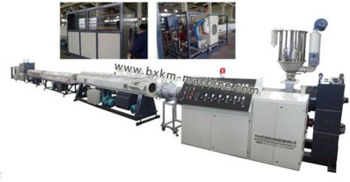 Special design for sizing and cooling system by using film and water ring to cool hdpe(pp,abs)material, which can fit for the requirement of hdpe(pp,abs).and the design can ensure the stability of diameter and roundness when producing the pipe with thick wall.special design vacuum sizing tank can ensure the stability of size and roundness,speed controllers are used in extruder, haul-off to offer stability and precision.