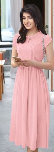 Peach Fit and Flare Dress, Packaging Type : Packet
