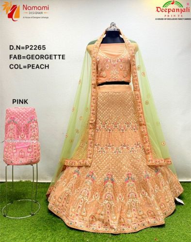 Peach Georgette Lehenga Choli, Technics : Machine Made