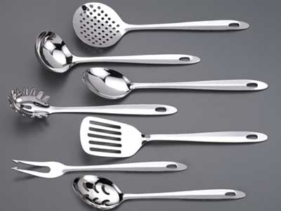 Contact SupplierFollowing are the Specifications of Pearl Design Kitchen Tools : Art No. : VCL 32237A : SkimmerB : LadleC : Basting SpoonD : Spaghetti OvalE : Slotted TurnerF : ForkG : Slotted Spoon