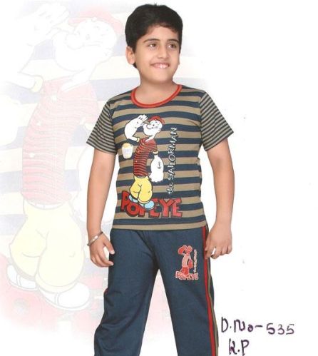 We are offering kids wear boys night-suit with cartoon character and atractive combination for age group of 4 to