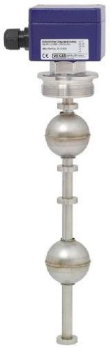 A float with a permanent magnet moves reliably along with the liquid level on a guide tube. Within the guide tube is fitted a reed contact (inert gas contact), which is energised, through the non-magnetic walls of the float and guide tube, by the approach of the float magnet. By using a magnet and reed contact the switching operation is non-contact, free from wear and needs no power supply. The contacts are potential-free. WIKA float switches with permanent magnets are also available with several switch points.