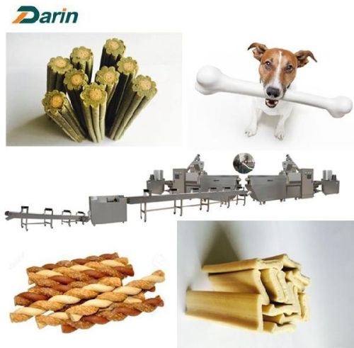 Contact SupplierPet chewing treat extruding machine instruction drd-100 pet chewing treat extruding machine is suitable to make dog snack with various sizes and shapes. The raw materials can be corn flour, wheat flour, fish meal, ox bone meal, chicken powder etc. The structure is made by carbon steel, and the cover body, mixing tank and all the parts in contacting with the raw material are made by stainless steel 304;a wide range of products can be obtained in a variety of different ways, and can configure various dies simply and rapidly;two sets of single screw extruder can work together to make double-color pet treats, also can connect twisting device for twist pet treats parameter output installed capacity actual capacity dimension workers required 100-150kg/hr 66kw 50kw 18Â x 5 x 3m 2-3Â workers machine picture sample picture certificate package & shipping faq exhibition.