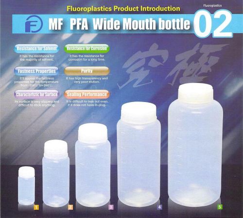 We are Offering PFA Bottle Narrow Mouth 20ml 100ml 250ml 500ml 1000ml. PFA products are mainly used in the field of of Semi-conductor, Analysis, Solvent abd Pharmaceutical operation. Our PFA bottle were already passed toxicity test by USP "Class VI". You can use our PFA bottles as the storing and shipping bottle for medical chemical.