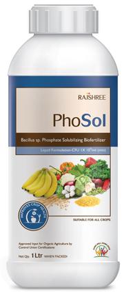 PHOSOL contains the phosphate solubilizing bacterium Bacillus sp., which, on reaching the soil gets activated and produces fresh batches of active cells. During their growth, they secrete organic acids that solubilize the fixed phosphorus in the soil and make it available to the plant in a usable form. This product is suitable for all crops.