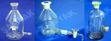 Aspirator, Bottles C-11015 Glass, with ground in stopper and tablature near the bottom Aspirator, Bottles C-11018 Boro 33 glass, with outlet for tubing, near the bottom. Aspirator, Bottles C-11020 Boro 33 glass with stopper at top, outlet socket 29/32 near the bottom and stopcock Bottles, Reagent C-11155 Boro 33 glass, narrow neck, with interchangeable ground glass hollow stopper.