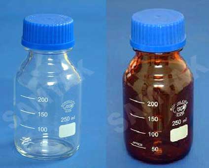 Bottles, Reagent C-11160 Boro 33 glass, wide mouth with Polypropylene screw cap and pouring ring, graduated, autoclavable Bottles, Reagent C-11161 Boro 33 glass, Amber wide mouth with Polypropylene screw cap and pouring ring, graduated, autoclavable