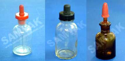 Clear Glass with ground neck, dust proof polythene stopper, glass dropper and rubber teat.