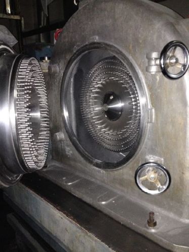 Pin mill, Type PM are used for fine grinding of dry, hard grind or brittle materials. infeed by feeding mechanism with magnetic separator. Grinding is done by impact between mounted pin rows of the rotating and stationary discs, Particle size is determined by number of pins and speed of disc. Â