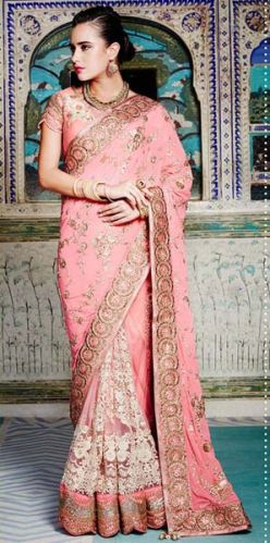 Pink Georgette Designer Embroidered Party Wear Saree?