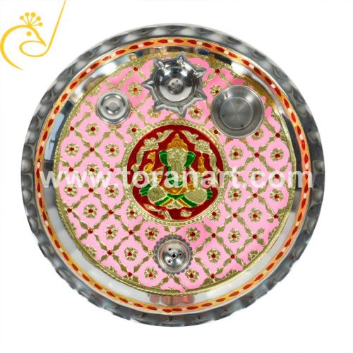 Round Pink Meena Shagun Pooja Thali
