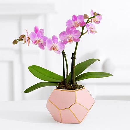 Contact SupplierWhat is more adorable than a mini orchid? A mini orchid in an exclusively designed pink mason jar! This special, miniature double stemmed phalaenopsis in pinks and purples is a wonderful gift for all occasions. To ensure highest quality, orchids are hand selected for delivery and will be an assortment of colors. Orchid stands 12-15" tall. Blooms last approximately 8 weeks, and care instructions are included.