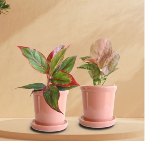 Estimated Delivery: between 4 to 9 days all over India. Note: Deliveries may get delayed due to festive season. An adorable duo of two distinct looking plants offering shades of green and pink to your space. This duo has two plants in individual planters. What you get: - Set of 2 Plants: - Aglaonema Red Lipstick (Small) - Syngonium Neon Robusta (Small) - 2 Ceramic Pots (4 inches diameter) - 2 Pot Plates