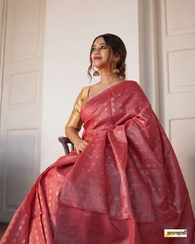 Pink Staple Semi Silk Saree, Age Group : Girls