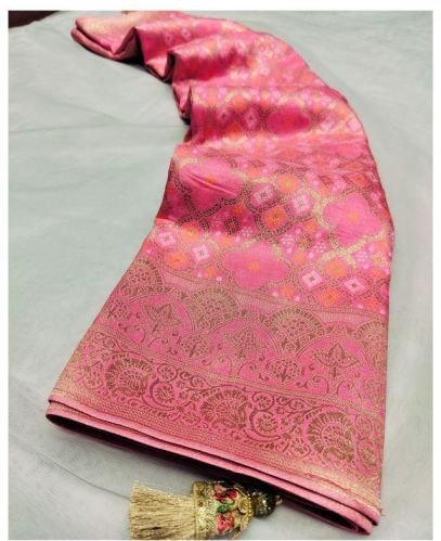 Noviah Pink Viscose Bandhani Saree, Speciality : Anti-Wrinkle, Shrink-Resistant