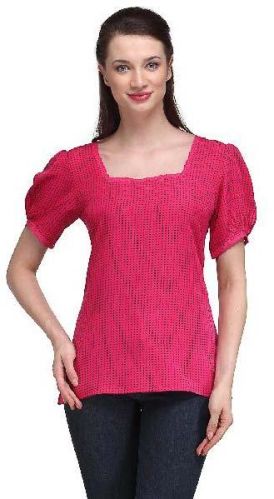 Women High Quality trendy, fashionable Casual Top puffed short sleeve lace 100% Polyester polka dot ladies tops