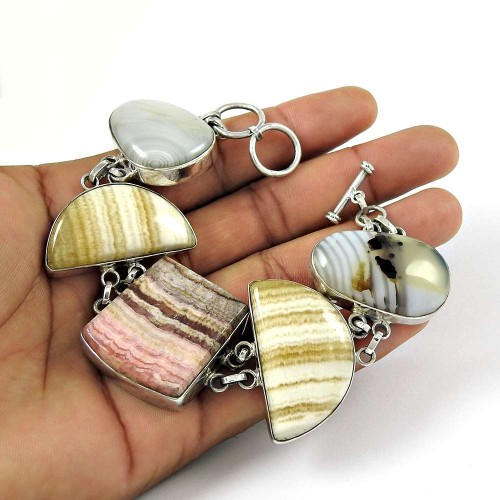 Party Wear 925 Sterling Silver Stripped Onyx Gemstone Bracelet Ethnic Jewelry