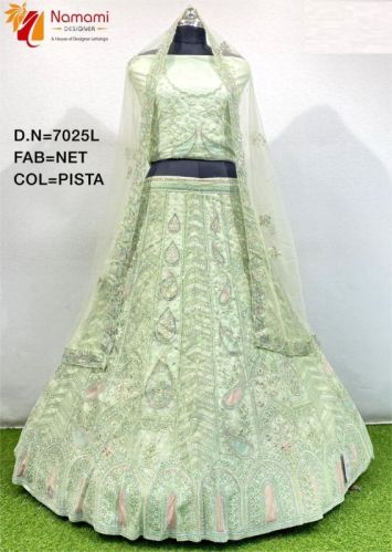Pista Green Net Lehenga Choli, Size : Free Size