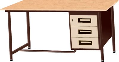 Office table with 3 drawer unit, ERW square tubular frame with footrest.