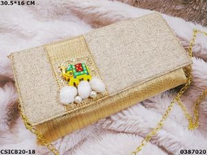 Contact SupplierThis beautiful and elegant clutch bag is made up from fabric and the flap is made up of jute, in addition it makes feel special to every women. The wooden elephant brooch with pom-pom completes its look. This lightweight bag is easy to carry and suitable for any special occasion or party festive season. This Clutch Bag adding a glamorous and beautiful touch for your day or night look and goes with every outfit.
