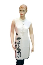 Plain Embroidered Sleeveless Top With Chinese Collar