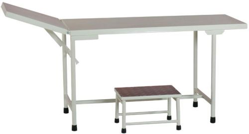 Overall approx. Size : L 1820 mm x W 560 mm x H 815 mm. Frame : Press bend CRCA sheet Top with backrest adjustable on ratchet. CRCA tubular legs Pretreated & Epoxy powder coated Stepping stool & Mattress