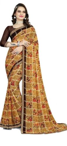 Plain Gauri Georgette Ladies Saree, Technics : Machine Made