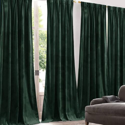 Green Velvet Curtains, Pattern : Plain