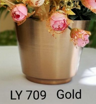 Round LY 709 Gold Metal Planter, Pattern : Plain