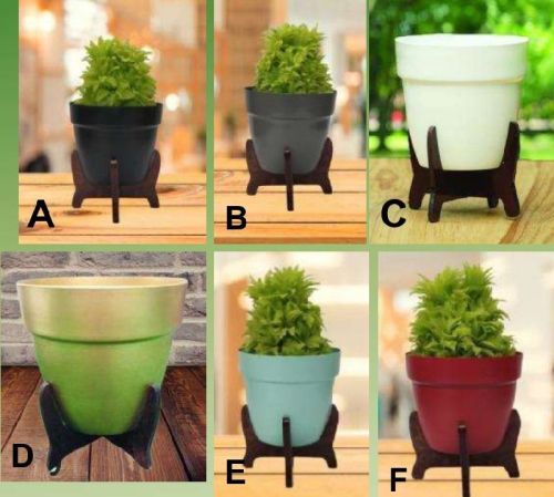 Polished Plain Pot With Wooden Stand, Packaging Type : Cartoon Box