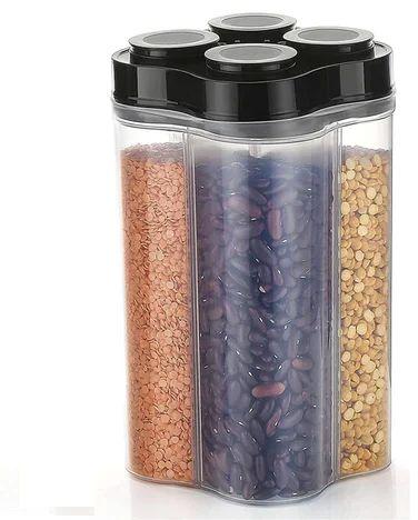 Assorted Rectangular Plastic 4 Section Multipurpose Storage Container, Storage Capacity : 2500ml