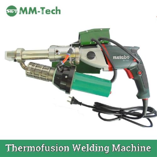 Contact SupplierMM-Tech Brand Thermofusion Welding Machines including Hand Extruder Plastic Extrusion Welder SWT-NS610D for weld geo-membrane,hdpe pipe,plastic tank,Plastic Extrusion Welder For Geomembrane SWT-NS610D,Plastic Extrusion Welder For Geomembrane, Plastic Extrusion Welder SWT-NS610D,SWT-NS700 Geomembrane Wedge Welder for geomembrane sheet,and SWT-B16050H Pe Welding Machine Butt Fusion Welder for HDPE Ppie and Fittings.SWT-NS610A Hand Extrusion Gun & SWT-NS610B Hand Held Plastic Extruder with MEITABAO brand driving motor. Application and FeaturesPe Hand Extruder  SWT-NS610D is used for weldng PE,PP,PVC,PVDF and thermoplastic material.This tool is of lightweight,stable performance,convenient operation,large-amount extrusion and high efficiency,the advantage is for welding narrow gap and corners where is not easy to reach. 1.This welder start to weld when the temperature up to 270°c2.This welder is welded with PE or PP welding rod 3.0-4.0mm,if you want 5.0mm welded,please specify before order.3.It comes with two welding shoes ,flat one and corner one.4. Any customized demands, you can ask us directly. We have professional technicians team. Technical Parameters For  PP Extrusion Welders Model SWT-NS610D Voltage 220V Frequency 5060Hz Extruding Motor Power 800W Hot Air Power 3400W Welding Rod Heating Power    Â