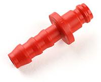 This small quick connector has easily movable sleeve that locks the plug in place. When the plug is disconnected the socket acts as shut off valve.
