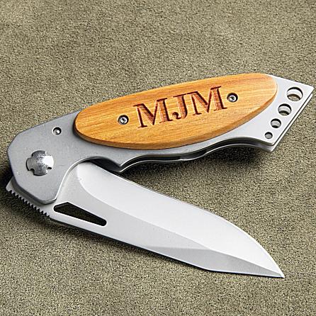 This sturdy pocket knife features a contoured handle with wood accents, a belt clip, and a 3 ½” stainless steel blade. We laser engrave up to three initials on the handle. Measures 4-½”Lx1-58” W, opens to 8”L. Wood grains will vary slightly from picture. Please note: This knife has a lockbar spring that locks the blade into place when open. To close the knife, gently push the lockbar toward the handle of the knife. This will free the blade so you can close it. Item