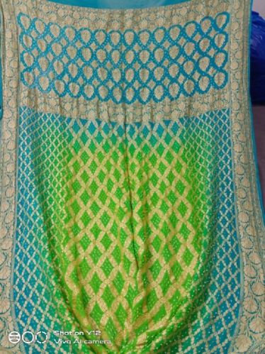 Pure chiffon silk Bandhni Banarasi sareeĀ