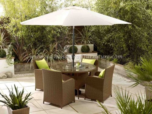 We are offering poly rattan coffee set (prcf-003). Dimension: l x w x h "poly rattan coffee set flat fiber, alu frame 1.2mm, cushion 3cm, water resistant fabric 250 gr" coffee chair( 4pcs/set) 56 65 80 table with tempered glass 120 120 74 umbrella 300 300