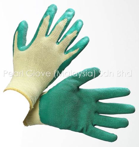 Yellow polycotton coated with latex crinkled surface, polycotton coated latex glove. - excellent grip - tough and durable - cut resistant level 1 ideal for us in the following industries: *construction *highway maintenance *steel & metals.