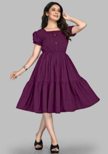 Regular Fit Polyester Midi Dress, Color : Burgundy