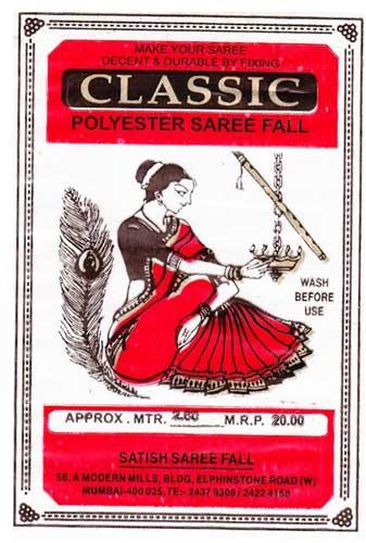 We offer Polyester Saree Fall (Classic) for the esteemed clients. This Polyester Saree Fall (Classic) is widely in demand in Mumbai and is used in various sarees. The clients can avail the Polyester Saree Fall (Classic) at reasonable price from us. Product Details Quality Count(in one inch) : 63 x 60Color Range : 300Price : Rs. 20 per piece