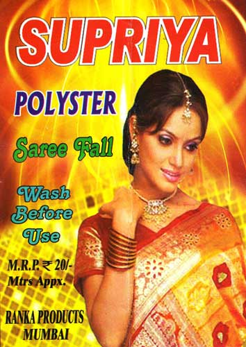 The Polyester Saree Fall (Supniya) is offered by us in the market. Being economical in cost, the Polyester Saree Fall (Supniya) is in great demand in the market. This Polyester Saree Fall (Supniya) mainly common in Mumbai and nearby stations. Product Details Width : 4.75 cmLength : 1.94 cmQuality Count(in one inch) : 61 x 60Price : Rs. 18 per piece