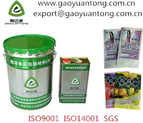 Offers polyurethane adhesive. Pu-9075g is often used for lamination of dry food package film such as bopp, cpp, pet, ny, ldpe. Properties: 1.good coating ability,basically no white dot,bubble. 2.when laminating aluminum coated film,please do test first,avoid aluminum layer transfer. 3.it not fits boiling packaging film. Package: main agent: 20 kg pail; hardener: 4 kg pail certification: iso 9001 iso 14001 msds sgs.
